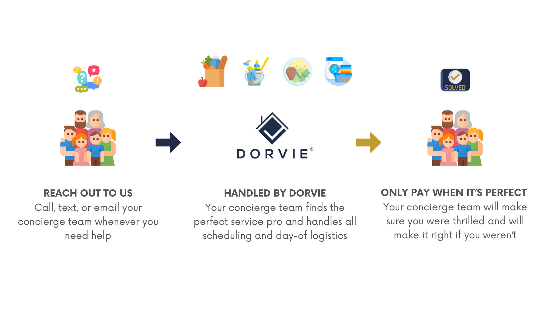 As a Dorvie member, you'll be paired with your own personal (and human!) concierge team. Call, text, or email your concierge team as needs pop up. We get you the solution you need. You don't need to do the extra research.